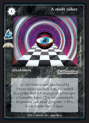 A múlt tükre (9): Elég jó kis erőforrás lap érkezett A múlt tükrének felújításával. A Minőségi csere még mindig előfordul a versenyeken több pakliban. Azzal összehasonlítva A múlt tükre szerintem egyértelműen jobb. Kicsit nagyobb a feltétele, hiszen a gyűjtőből is kell semmizni egy egyező színű lapot, ellenben a hozama is nagyobb. A Minőségi cserénél kapok egy választott lapot, és 2 lapot a gyűjtőbe rakhatok. Ennél viszont felhúzok három lapot, mellette gyógyít és VP-t ad. Nem véletlenül került rá, hogy az első körben nem játszható ki, a tesztelésen kicsit erősnek találtuk egy olyan pakliban, ami első körben kipakol, pl. Molluszk. A lap adja magát, hogy Leah, gyűjtőgeneráló pakliba rakjuk be, amennyiben nem börtönözünk, vagy bilincsezünk. Emellett befér minden más pakliba is, ami az első vagy második körben megpörög, és használ varázslatot. (Ez utóbbi kitétel talán nem lesz mindig igaz, ha kijön a Világégés, az új HKK kiegészítő.) Univerzális, erős lapról van szó, szerintem.