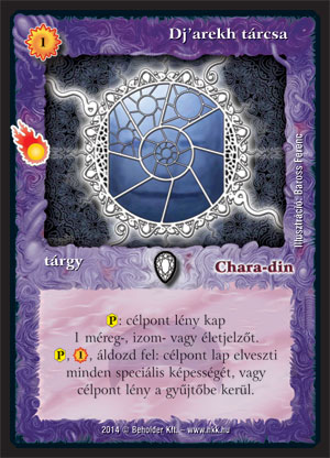 A zanszilánkos vonal eddig is igen meghatározó volt a lila szín esetében, hiszen a Neuroblaszt, az Ouitmlen, a Talbot kínja, a Sugárzó ősanyag vagy éppen az Íjászképző egy egészen erős és univerzális vonulatot képeztek. Ez a sor most tovább bővül, többek között az egykoron szép karriert befutó Dj'arekh tárcsa feltámasztásával, melynek személyében egy sokoldalú kártyát kapnak a lényekkel operáló paklik. A jó öreg tárcsa leginkább elhúzódó meccseken lesz képes megmutatni igazi erejét, hiszen ekkor a széthajigált izmok, életek és mérgek komoly lapelőnyt képesek termelni (gondoljunk csak a méltán népszerű Deego-ra), ráadásul ha nagy a vész, akkor egy lapot is meg tudunk vele oldani. A speciális képesség elvétele ráadásul sokszor jobb, mint egy sima leszedés: gondoljunk csak az olyan zavaró életes lényekre, mint az előbb említett Deego.