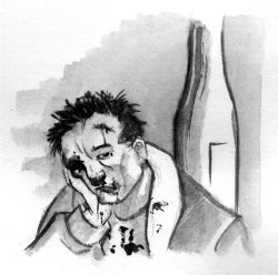 Halkan beléptünk az udvarra. Intettem társaimnak, hogy fedezzenek, majd a fekvő férfihez léptem. A fickó kinyújtott karral, arccal lefelé hevert, mintha valamit megpróbált volna elérni. Halkan káromkodva fordítottam meg a sebesültet.
