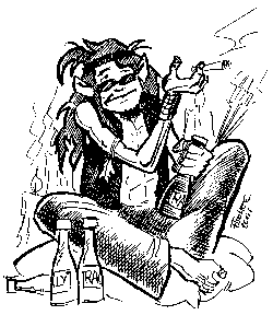 Szólni akartam, hogy bizonyítottam már a férfiasságomat Urtica Dioicának, de csak bólintottam. Miután Pokolivadék is jónak találta a tervet, elindultunk, hogy legyőzzük a Sötét Armadát. Nem akarlak untatni tieteket a harc részleteivel, hisz nagyon jól tudjátok, milyen a tipikus üsd-vágd taktika. Gondolom, ti is sok ilyenben részt vettetek. Annyit azonban meg kell jegyeznem, hogy minden simán ment. A hagyományos taktika tökéletesen bevált. Ráadásul Rumbold Theofiltől még aranyat is kaptunk. Munkánk végeztével visszatértünk a ZÚG-KORCS-MÁba és úgy döntöttünk, hogy utoljára életünkben iszunk még egy kis RAGÁLYTM-t. Mit is mondhatnék? Jól felöntöttünk a garatra. Részegen, kábulva danolásztunk. Én igencsak vidám voltam azon az estén. Elfelejtettem ez eddigi bajokat, megbékéltem a sorsommal. Vidámságomat Csukonyi állandó zaklatása árnyékolta be. Egész este a jogos nyereményét követelte rajtam. Úgy döntöttem, hogy még aznap végére járok az ügynek, csak ne nyagasson annyit.