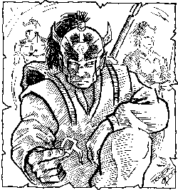 A katona azonban nem figyelt a vezetőnőre. Úgy szemlélte Bragto hájas képét, mintha különlegesen ritka kristállyal volna dolga, aminek összes részletét meg kell jegyeznie örökre. Majd hirtelen felemelte csontöklét és dörgő léptekkel elindult a klánfőnök felé.