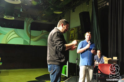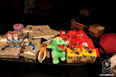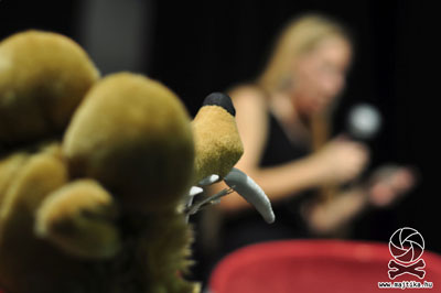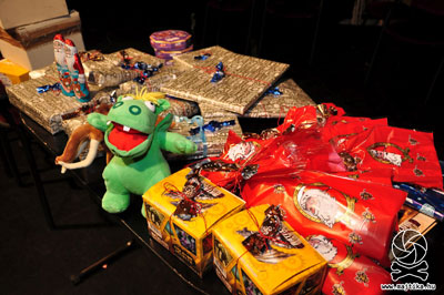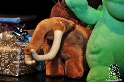 A tombolán TF-es, VÚ-s, HKK-s nyereményeken kívül sok meglepetés nyereménynek is örülhettek a szerencsések A fődíj, egy Beholder ajándékcsomag volt csupa remek ajándékkal, kiegészítve egy 5000 Ft-os beholderes vásárlási utalvánnyal is, amit egy TF-es játékosunk vihetett haza. Gratulálunk neki is még egyszer, és persze az összes nyertesnek. A Tombolán a szokásos jó hangulat volt most is. A már megszokott plüssök idén a félelmetes egyfejű sárkány volt és a még félelmetesebb törpemammut. És volt még volt egy meglepetés: a Megajégmotkány. Ez Katinak volt meglepetés, mert a Jégmágusok megszakítva a Tombolát, egyszer csak a színpadon teremtek és nekem adták a kabala állatkájukat, ami egy nagyon cuki, hatalmas plüss figura. El is nevezte Timotinak.