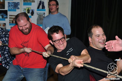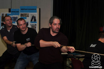 Nyáron a VÚ játékosok nyerték a szokásos TF-VÚ viadalt. Most a TF-eseken volt a sors, ha a játék nevének meg akartak felelni, és ismét behúzni a győzelmet, mint a tavalyi őszi találkozón. Mivel tudtuk, hogy a színpad itt kisebb lesz ezért inkább kevésbé mozgalmas feladatokat igyekeztünk kitalálni. Persze azért a kötélhúzás nem maradhatott ki a végén, ami tulajdonképpen el is döntötte a verseny kimenetelét. A játékosoknak felmértük a filmes tudásukat, idézeteket kaptak összesen 20 filmből és ezeknek a címeikre voltunk kíváncsiak. Több-kevesebb sikerrel, tudták a filmcímeket. Újdonság volt a Betűrejtvény és a számtanpéldák megoldása is. A számtanpéldákat egy 70-es években megjelent elsős számtan könyvből másolta ki Kati. Igazán érdekes szöveges feladatokat és komoly kivonás, összeadás műveleteket kellett elvégezni. Ez a feladat időre ment és a teljes pont csak a hibátlan megoldás esetén járt. Az egyik csapatnak majd a kivonást még át kellene ismételni. Nem maradhattak ki a TF, VÚ és általános kérdések sem. A TF és VÚ kérdéseknél most volt egy kis csavar. A csapatok a másik játék kérdését kapták meg. Egyformán tudták a válaszokat. A játék végére maradt a kötélhúzás, ahogyan már említettem az elején. Nagy küzdelem volt 3 menetben. A TF-es csapat diadalmaskodott, amivel megfordították az addigi eredményt. Így ők zsákolhatták be a TF-es társadalomnak járó extra nyereményt, amit december 5-től január 13-ig kapnak meg: +10% TP a leölt szörnyekre.
