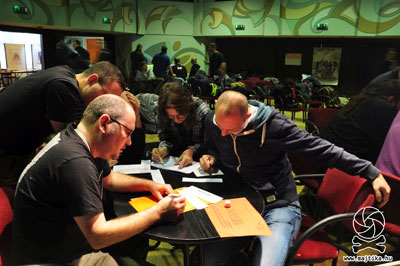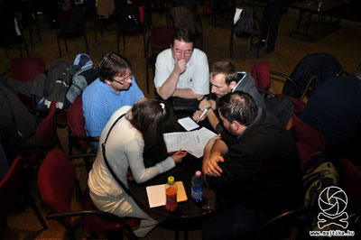 A Végzeturasok versenye jó hangulatban zajlott. Minden csapatnak 7 feladatot kellett egymás után megoldania. 3 csapatnak sikerült mind a 7 feladat, a sorrendet a gyorsaság döntötte el. A feladatok közt volt kvíz, totó, matek, szókihúzó és kakukktojás, persze mind a Végzetúr világából. Az egyik viccesebb feladat keretében a csapattagok portréját kellett lerajzolni, ebből szemezgetünk néhány gyöngyszemet :) A résztvevők unobtánium- és kryxónium fókuszokkal, relikviakuponokkal és csatlóskristályokkal lettek gazdagabbak. A győztes csapat tagjai: Kiaphet, Offsboy, Amorthius, Marcsa és Tavaris.
